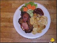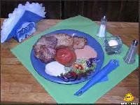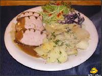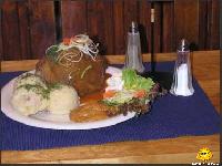Jadło Gaździny, czyli potrawa podobna do placka po węgiersku lecz walory smakowe są typowo góralskie - całość oblana śmietaną i startym oscypkiem.