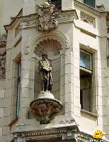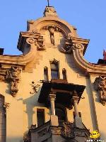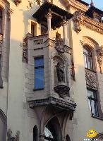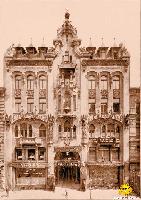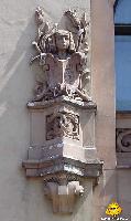 Na starej pocztówce z 1901 r. widoczne są także dwa duże napisy zajmujące łukowate przestrzenie nad II piętrem, metalowe gryfy i piękne kraty przy bramie i oknach parteru.