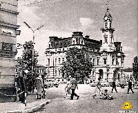 Dzisiejszy eklektyczny gmach ratusza pochodzi z połowy lat 90 – tych XIX wieku. Wieża, bogato zdobiona orłami oraz monumentalną figurą królowej Jadwigi z wieńcem laurowym i berłem, zwieńczona jest hełmem kopułowym i masztem z Orłem. Usytuowana jest we wschodniej części ratusza.