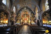 W głównie XVIII – wiecznym wyposażeniu kościoła wyróżnia się barokowy, kamienny portal oraz chrzcielnica z XVII wieku. Ponadto świątynia ozdobiona jest freskami Stanisława Stroińskiego. Poza granicami murów znajduje się pomnik XVII – wiecznego gwardiana klasztoru – K. Szyszkowskiego.